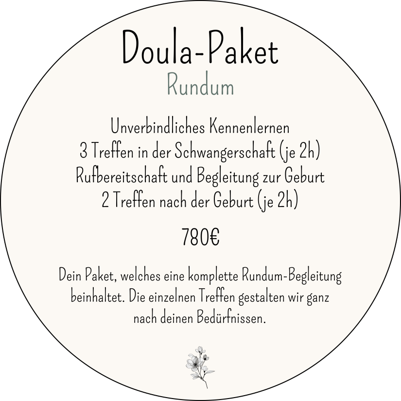 Ich wünsche mir von ganzem Herzen, dass jede Frau, die es möchte, Zugang zu einer für sie passenden Begleitung rund um die Geburt bekommt. Falls du den Betrag für eines der folgenden Pakete nicht aufbringen kannst, sprich mich bitte ganz offen an. In jedem Fall finden wir gemeinsam eine Lösung.